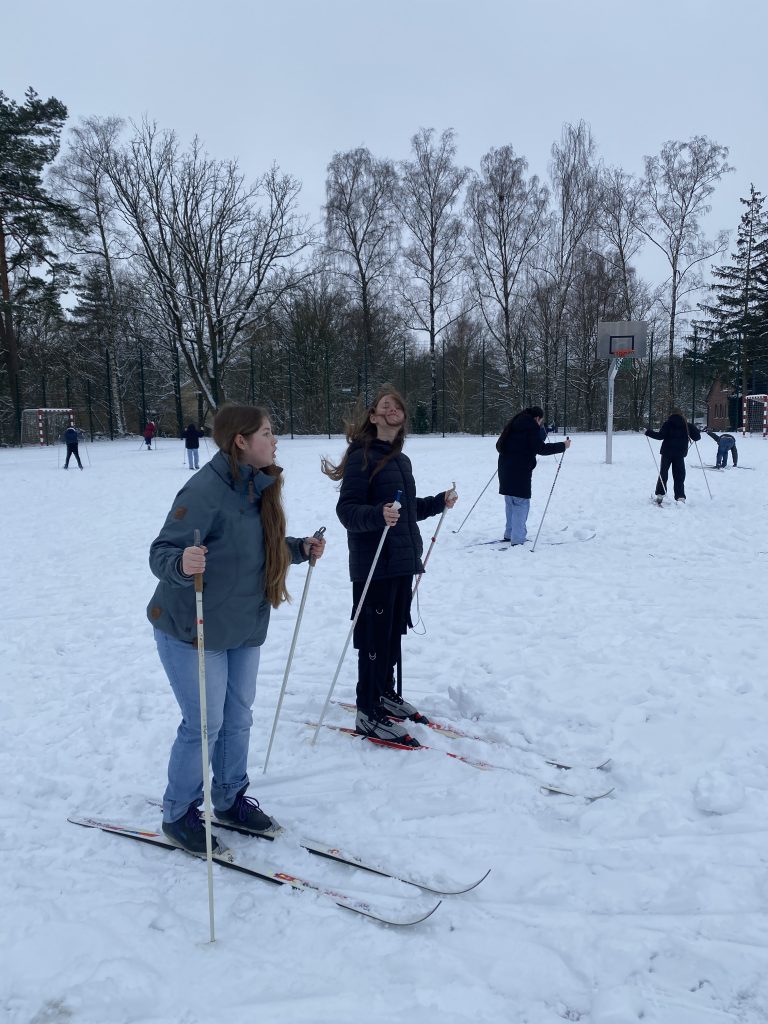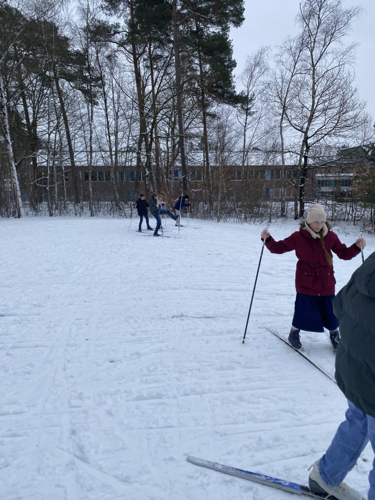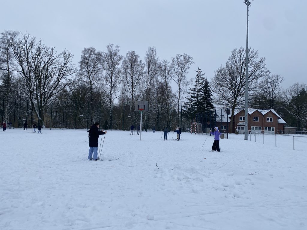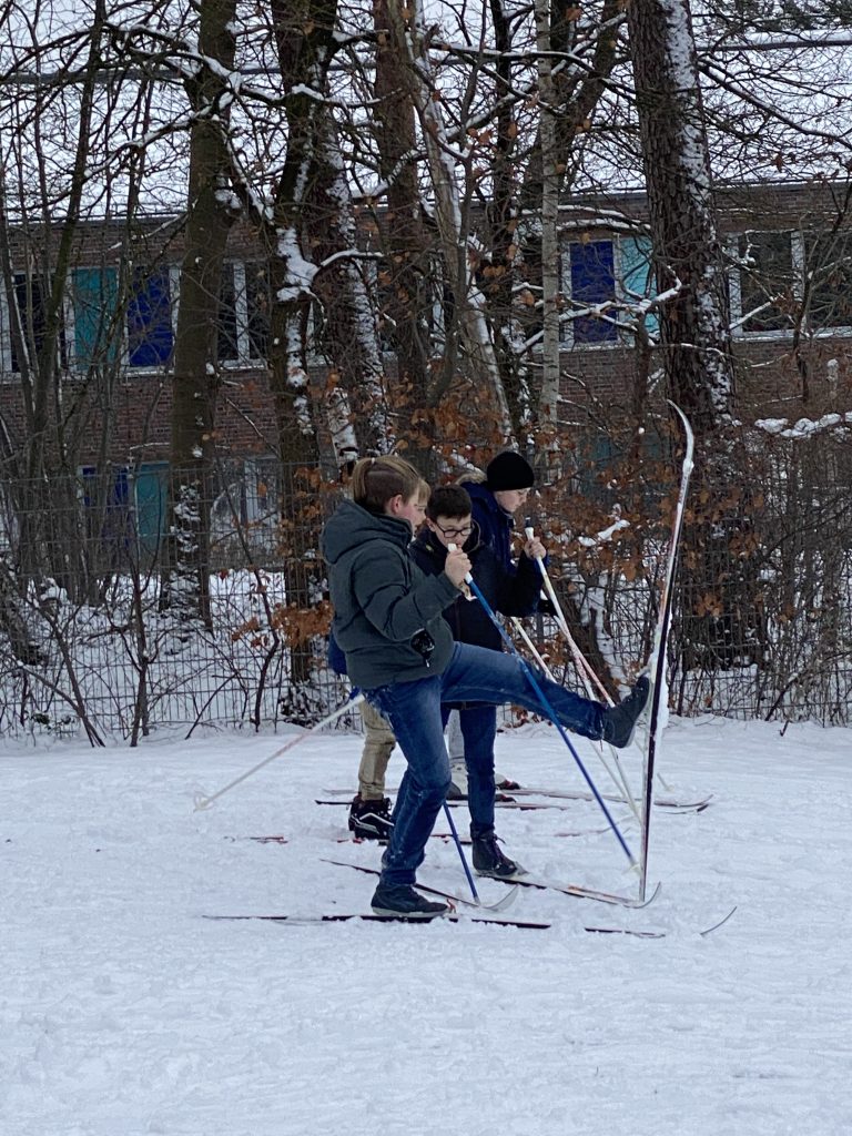 Die Klassen 10c und 6b durfte heute im Rahmen des Sportunterrichts ihre ersten Erfahrungen auf Langlaufskiern sammeln. Bei guten Schneebedingungen fand der Unterricht auf dem Gelände des angrenzenden Böhmerwaldstadions statt. Die 10c und 6b waren dabei nicht die einzige Klassen, die an diesem Tag auf Langlaufskiern unterwegs war – das winterliche Wetter wurde von mehreren Lerngruppen aktiv genutzt. Das benötigte Langlaufmaterial wie Ski, Schuhe und Stöcke stellte die Schule zur Verfügung. Dieses hatte seit dem letzten Einsatz über drei Jahre auf einen solchen Einsatz gewartet, da es aufgrund des Klimawandels während der Schulzeit immer seltener zu ausreichend Schnee gekommen war. Umso größer war die Freude über die aktuellen Bedingungen. Die Schülerinnen und Schüler zeigten viel Motivation, hatten sichtlich Spaß und erzielten schnelle Lernfortschritte. Nach einer kurzen Übungsphase waren sogar erste kurze Abfahrten möglich. Wir hoffen auf weitere Schneetage, damit auch noch andere Klassen in den Genuss des Langlaufunterrichts kommen können.