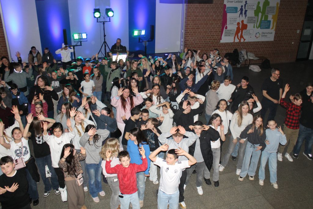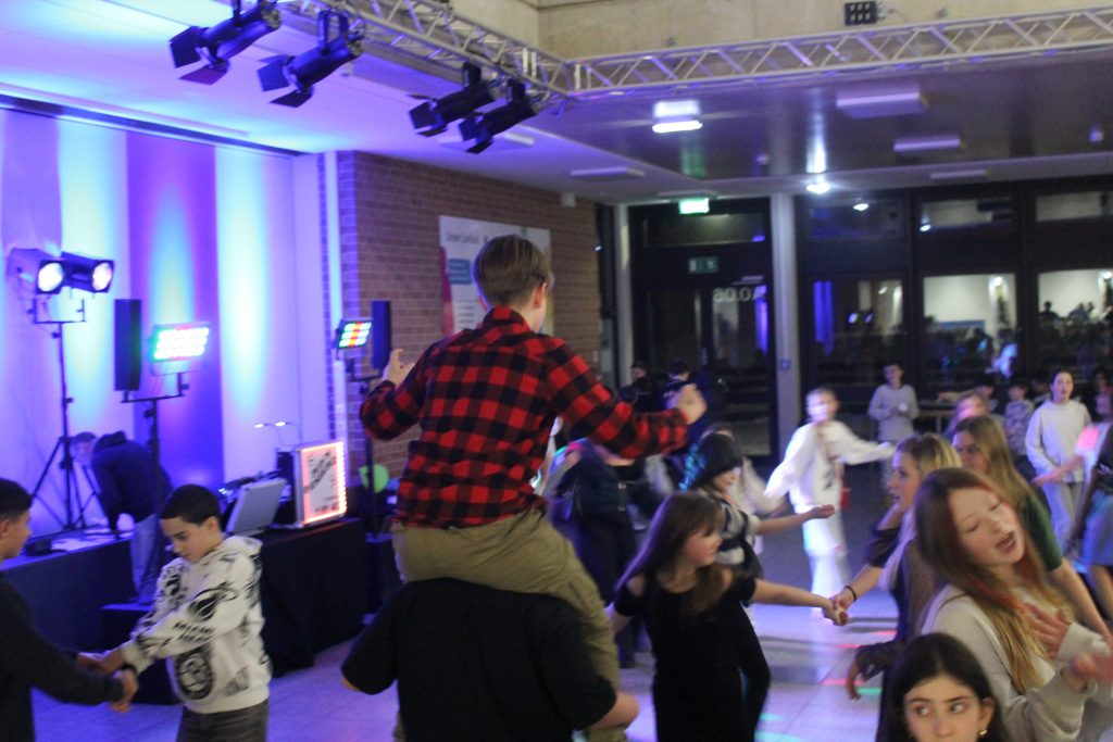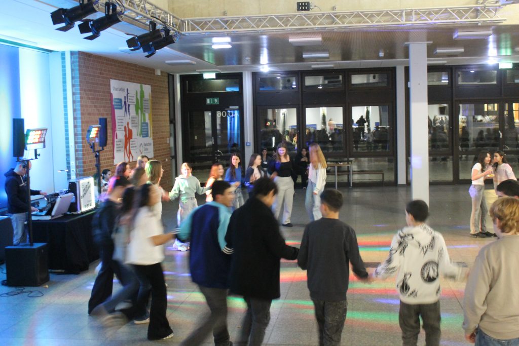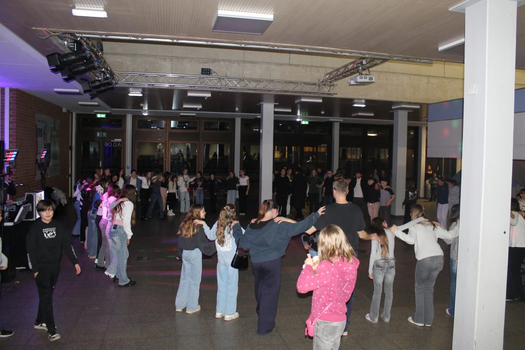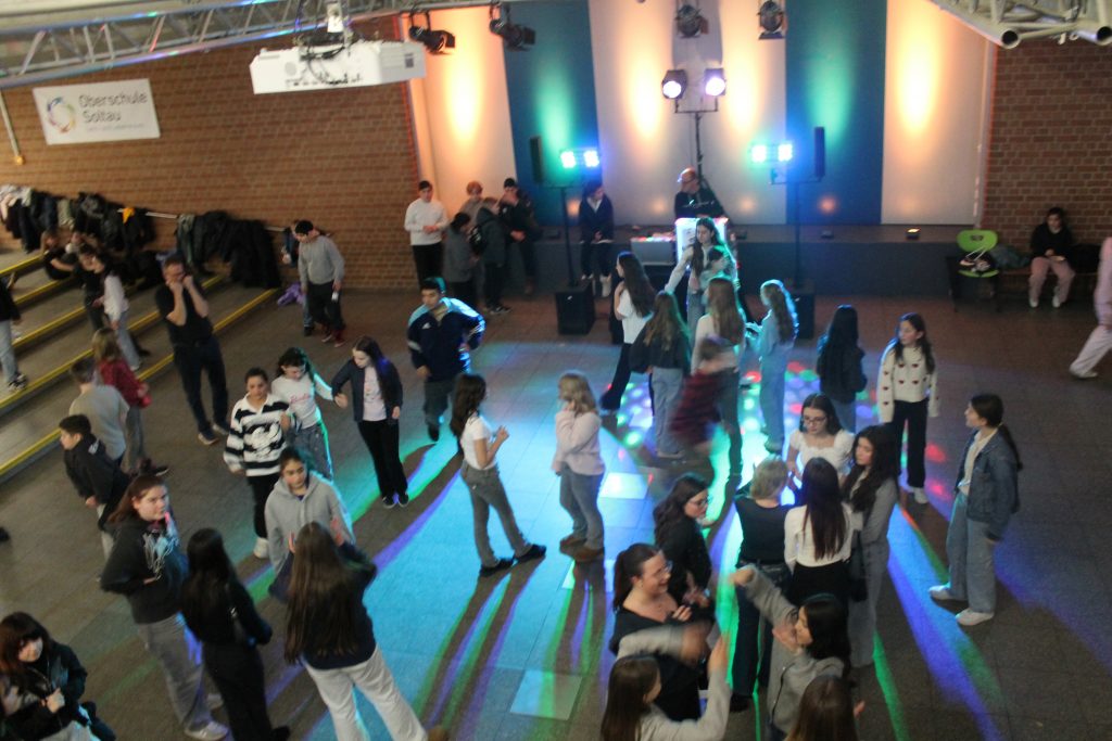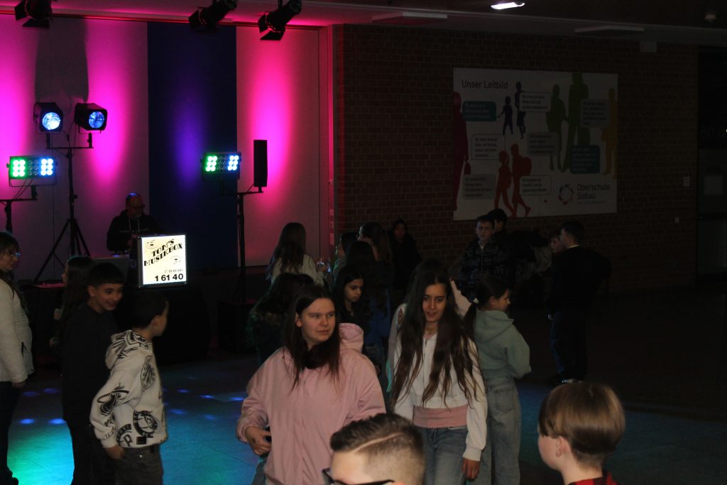 Richtig viel los in der OBS: Am vorletzten Schultag vor den Zeugnissen steppte der Bär (also eigentlich die Fünft- und Sechstklässler) soooooo richtig im Forum. DJ Tom’s Musicbox (alias Tom Bade) wurde vom Förderverein engagiert, um den Schüler*innen mal richtig einzuheizen. Wer die strenge Tür am Eingang passieren konnte, der hatte zwei Stunden richtig gute Laune und vor allem Musik. Für Snacks und Co. waren die Abschlussklassenschüler zuständig, auf dem Dancefloor sorgte ein gewisser Kollege für die richtigen Dancemoves der Schüler*innen. PAAAARTYYYYYYYYYYY HAAAAAAARD war angesagt!
