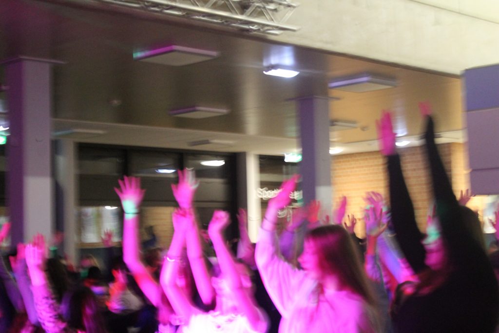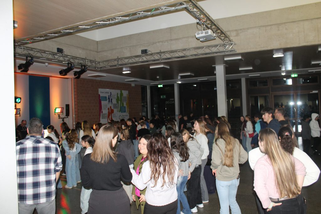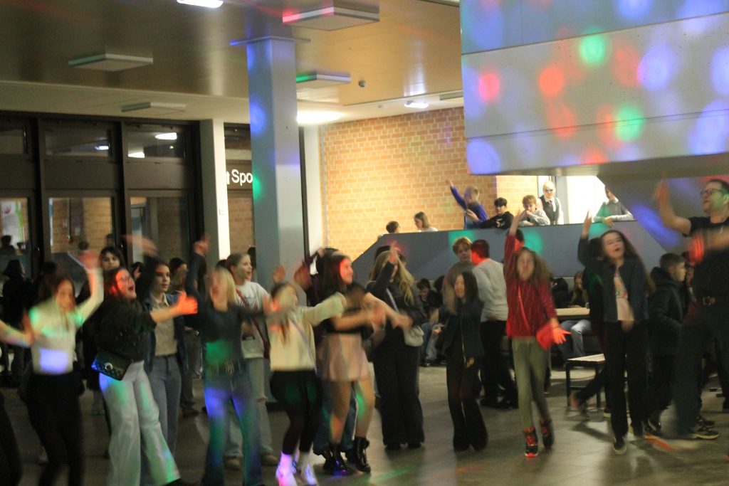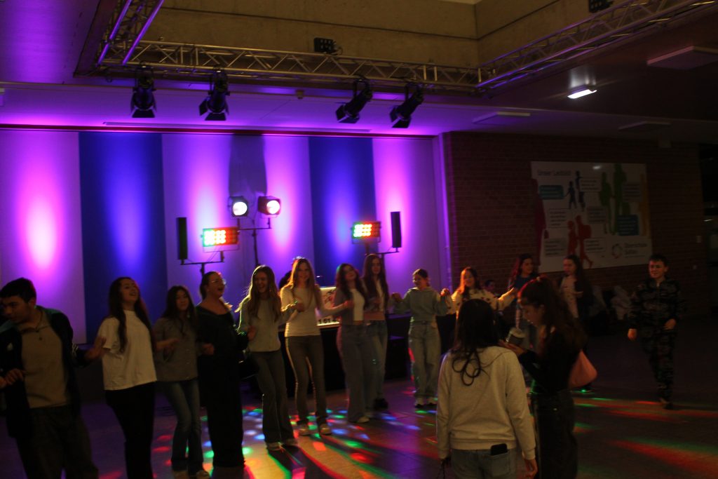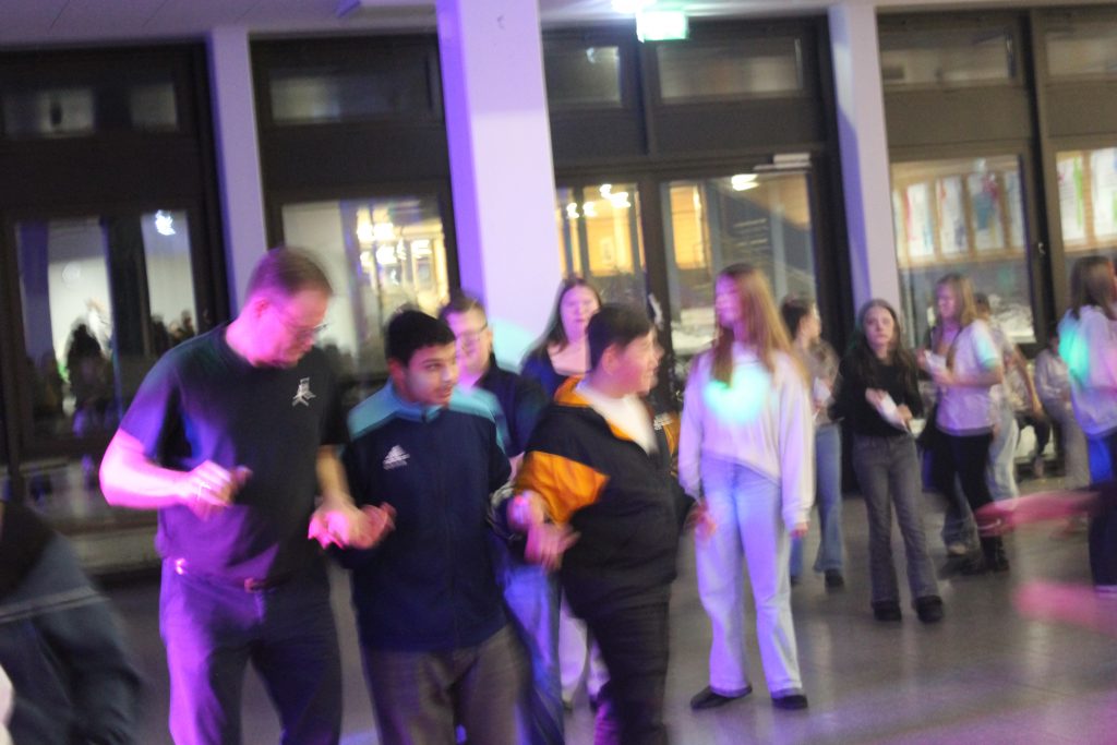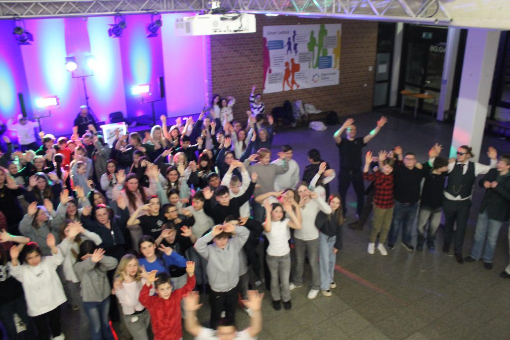 Richtig viel los in der OBS: Am vorletzten Schultag vor den Zeugnissen steppte der Bär (also eigentlich die Fünft- und Sechstklässler) soooooo richtig im Forum. DJ Tom’s Musicbox (alias Tom Bade) wurde vom Förderverein engagiert, um den Schüler*innen mal richtig einzuheizen. Wer die strenge Tür am Eingang passieren konnte, der hatte zwei Stunden richtig gute Laune und vor allem Musik. Für Snacks und Co. waren die Abschlussklassenschüler zuständig, auf dem Dancefloor sorgte ein gewisser Kollege für die richtigen Dancemoves der Schüler*innen. PAAAARTYYYYYYYYYYY HAAAAAAARD war angesagt!
